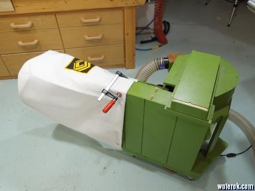 : U( G6 e. ?4 G2 Z! q# y2 ]I wasn't expecting my big dust collector to perform terribly well. The fitter bag on it is just covered with dust, and if I run my hands along the inflated bag, I can see a cloud of dust released from it.- \8 A+ |2 z# S& U; f1 W