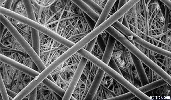 利用拉延方法,将PTFE薄膜拉成类似纤维的多孔膜。PTFE的纤维丝径可以细至0.02-0.05微米(20~50 纳米),是传统玻璃纤维的1/10,也是目前最细的纤维之一。