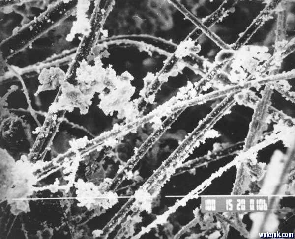 6 `) L0 ~+ s2 t6 L: \7 a7 n纤维的直径和微尘差不多大,而各根纤维之间的“网眼”空隙就更“大”了,纤维间“宽阔”的空间允许气流顺利通过。